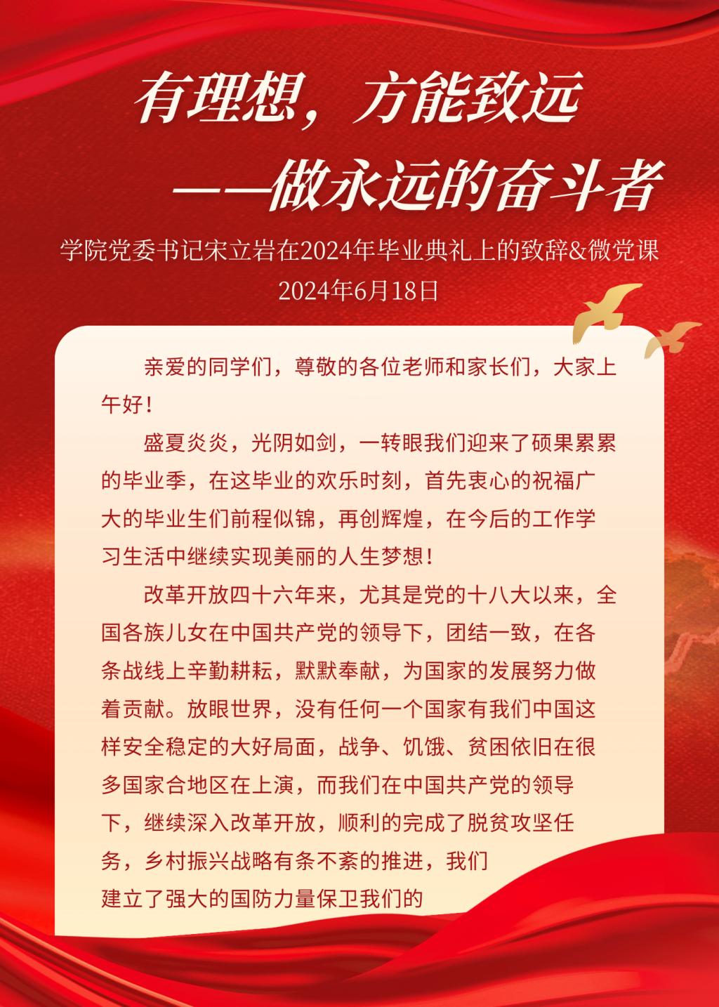 yl23455永利官网2024年毕业典礼书记致辞&微党课